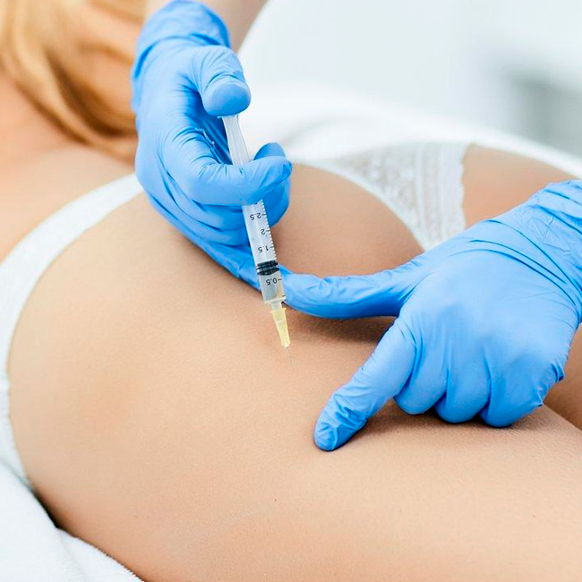 Consiste en inyectar, de forma intradérmica, medicamentos homeopáticos que son bien tolerados por el organismo y que ayudan a eliminar la grasa localizada. Durante el tratamiento de mesoterapia es recomendable seguir una dieta baja en grasas, evitar el alcohol y beber una gran cantidad de agua para ayudar a eliminar toxinas.